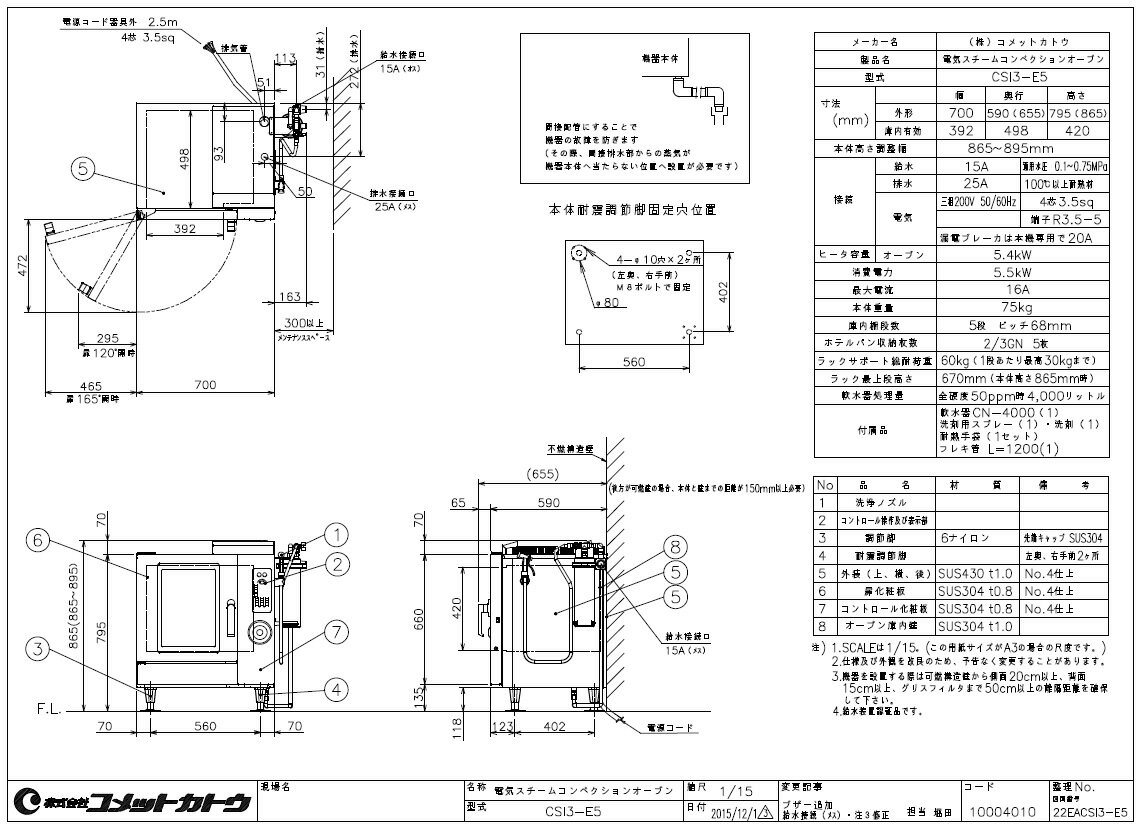 商品の仕様●外形寸法(mm):W700×D590×H865●ブレーカー容量:20A●電気消費量:3P200V/5.5kW●給水接続口径:15A●排水口径:25A●製品重量:75kg●水圧0.1Mpa〜0.75Mpaでご使用ください。